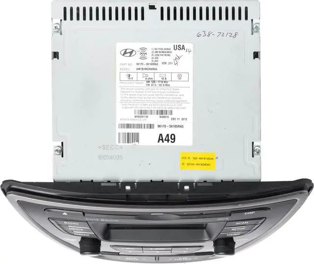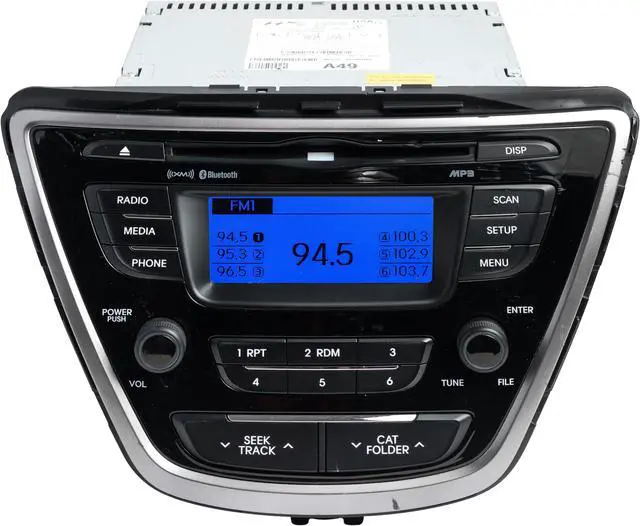 This is a Professionally Remanufactured AM FM Radio Satellite Ready MP3 Player Bluetooth Singleisc CD Player that fits 2013 Hyundai Elantra. Please see pictures for more cosmetic details. This item has been cleaned, serviced as needed and thoroughly checked. Function is in 100% working order!