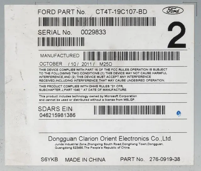 This unit is being sold as a REPLACEMENT ONLY! The part number is CT4T-19C107-BB. If you do not have this exact part number, or compatible part number currently in your vehicle, it will likely NOT WORK. If you are unsure of your part number, contact us with your VIN and they should be able to provide you with the correct part number. They may look the same and have the same plugs but data streams may be different, not allowing them to code. For example, external amps are used in some cars and will not allow interchange, etc.