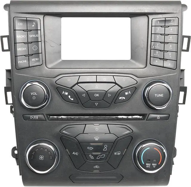This is a Radio Audio Climate Control Panel with Bezel that Fits 2015 Ford Fusion. This control panel is in good condition with minor wear, as pictured. This panel has been cleaned, serviced as needed and thoroughly checked. Function is in 100% working order!