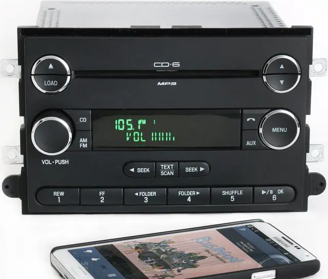 2006 - 2007 - 2008 - 2009 Ford Fusion & Mercury Milan AM FM mp3 6 Disc CD Player Radio. OEM Radio Upgraded with Bluetooth Music Capability. Stream audio from a smart phone, tablet or Bluetooth capable music device!