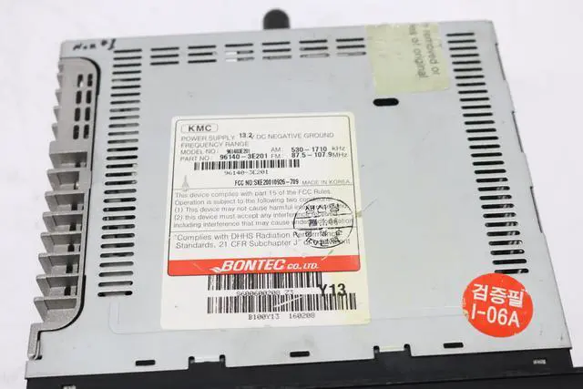 Part Numbers: 961403E200, 961453E200, 961453E201. This is for a Sorento AM FM Radio Single Disc CD Player. This radio has been professionally remanufactured, cleaned, and serviced as needed and thoroughly checked. The radio's appearance is slightly blemished with scratches throughout, as pictured, and is in 100% working order. This radio is being sold as a REPLACEMENT ONLY! The part number is 96140-3E201. If you do not have this exact part number currently in your vehicle, it will likely NOT WORK. If you are unsure of your part number, please verify with your VIN before purchase. They may look the same and have the same plugs but data streams may be different, not allowing them to code. For example, external amps are used in some cars and will not allow interchange, etc.