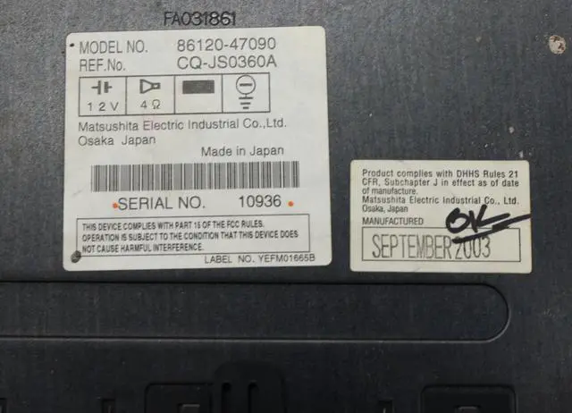 Part Number: 86120-47090. No Code Required. This is for a Toyota Prius radio AM FM CD player. This radio has been professionally remanufactured, cleaned, and serviced as needed and thoroughly checked. The radio's appearance is blemished with wear on the volume knob and scratches on the display screen. Radio is as pictured and is in 100% working order. This radio is being sold as a REPLACEMENT ONLY! The part number is 86120-47090. If you do not have this exact part number currently in your vehicle, it will likely NOT WORK. If you are unsure of your part number, contact us with your VIN and we should be able to provide you with the correct part number. They may look the same and have the same plugs but data streams may be different, not allowing them to code. For example, external amps are used in some cars and will not allow interchange, etc.
