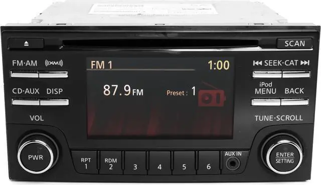 This listing is for a Nissan Rogue AM FM Single Disc CD Radio w Auxiliary Input. This radio has been professionally remanufactured, cleaned, and serviced as needed and thoroughly checked. The radio's appearance has minor wear but is in overall good condition, as pictured, and is in 100% working order.