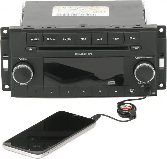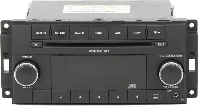 This listing is for a professionally remanufactured 2011-2012 Chrysler Dodge Jeep Radio AM FM mp3 Single Disc CD Player w Aux Input. This radio has been cleaned, serviced as needed, and thoroughly checked. Appearance is decent with minor wear. The function is perfect!
