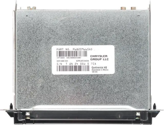 This unit is being sold as a REPLACEMENT ONLY! The part number is 68209665AD. If you do not have this exact part number, or compatible part number currently in your vehicle, it will likely NOT WORK. If you are unsure of your part number, contact us with your VIN and they should be able to provide you with the correct part number. They may look the same and have the same plugs but data streams may be different, not allowing them to code. For example, external amps are used in some cars and will not allow interchange, etc.