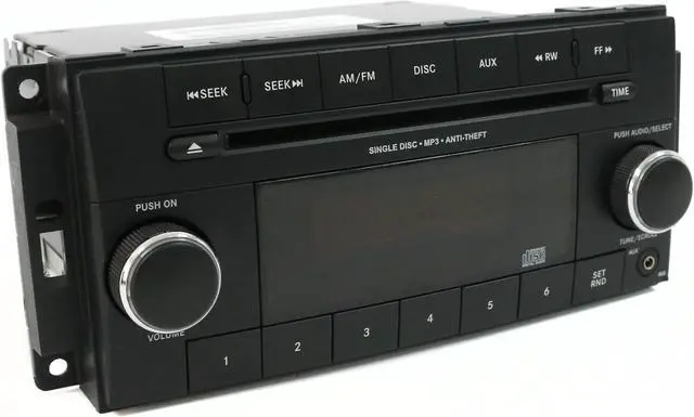 This listing is for a Chrysler Dodge Town & Country Caravan AM FM Radio mp3 Single Disc CD Player w Aux Input. This radio has been cleaned, serviced as needed and thoroughly checked. Appearance is decent with minor wear throughout the face as pictured. Function is perfect!