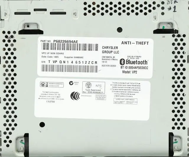 Part Numbers: 68226694AF, 68226694AD, 68226694AC. Code not included. This radio will need to be unlocked by a Chrysler dealer and paired to your vehicle. See below for details. This listing is for a professionally remanufactured Chrysler 200 Radio AM FM mp3 Single Disc CD Player w Bluetooth. This radio has been cleaned, serviced as needed, and thoroughly checked. Appearance is good with minor wear throughout as pictured. Function is perfect! This radio is being sold as a REPLACEMENT ONLY! The part number is P68226694AE. If you do not have this exact part number or compatible part number currently in your vehicle, it will likely NOT WORK. If you are unsure of your part number, give a dealer a call with your VIN and they should be able to provide you with the correct part number. They may look the same and have the same plugs but data streams may be different, not allowing them to code. For example, external amps are used in some cars and will not allow interchange, etc.