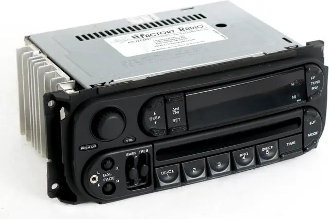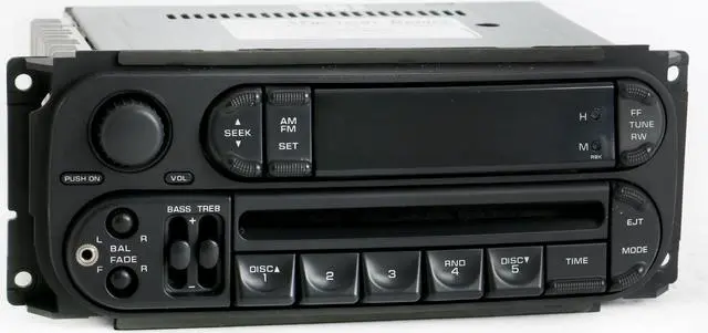This item is a late model round faced AM FM CD upgraded by us with auxiliary jack right on the face. Fully featured RBK option code. Part number P05091506AG. This radio has the new style 22 & 10 pin Chrysler plugs. Blue Display. Yes all the buttons work! Yes everything works! Its rebuilt! Plug and play no codes!