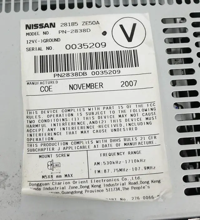 Model: PN-2838D This is for a Nissan Maxima AM FM Radio Single Disc CD Player w Aux Input. This radio has been professionally remanufactured, cleaned, serviced as needed and thoroughly checked. The radio's appearance is decent as pictured. This radio is in 100% working order. This radio is being sold as a REPLACEMENT ONLY! The part number is 28185-ZE50A. If you do not have this exact part number currently in your vehicle, it will likely NOT WORK. If you are unsure of your part number, contact us with your VIN and we should be able to provide you with the correct part number. They may look the same and have the same plugs but data streams may be different, not allowing them to code. For example, external amps are used in some cars and will not allow interchange, etc.
