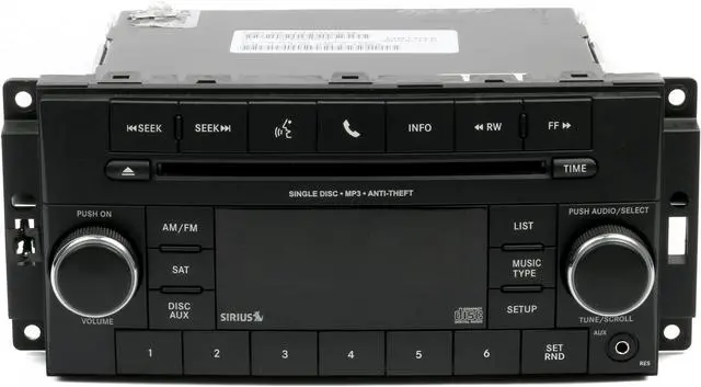 This listing is for a Chrysler Dodge Jeep AM FM Radio mp3 Single Disc CD Player w Aux Input mp3 iPod Ready. This radio has been cleaned, serviced as needed and thoroughly checked. Appearance is good with minor wear as pictured. Function is perfect!