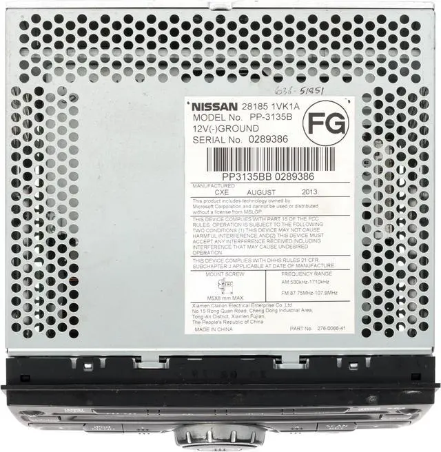 This unit is being sold as a REPLACEMENT ONLY! The part number is 281851VK1A. If you do not have this exact part number, or compatible part number currently in your vehicle, it will likely NOT WORK. If you are unsure of your part number, contact us with your VIN and they should be able to provide you with the correct part number. They may look the same and have the same plugs but data streams may be different, not allowing them to code. For example, external amps are used in some cars and will not allow interchange, etc.