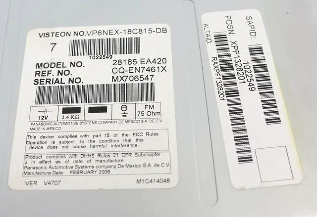 E420 Reference Number: CQ-EN7461X This is for a Nissan Pathfinder AM FM Radio mp3 6 Disc CD Player. This radio has been professionally remanufactured, cleaned, serviced as needed and thoroughly checked. The radio's appearance is decent as pictured. This radio is in 100% working order. This radio is being sold as a REPLACEMENT ONLY! The part number is 28185 EA420. If you do not have this exact part number currently in your vehicle, it will likely NOT WORK. If you are unsure of your part number, contact us with your VIN and we should be able to provide you with the correct part number. They may look the same and have the same plugs but data streams may be different, not allowing them to code. For example, external amps are used in some cars and will not allow interchange, etc.