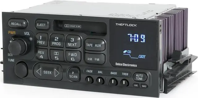 Option Code: UL0. Please note that Blazers use both mounts depending on the body. This is a truck slide mount and will only mount in vehicles which utilized this design. This listing is for a 1995-2002 (sometimes up to 2005) Chevrolet truck and van factory OEM AM FM Cassette Player Radio. It has the common slides mounts but we also have the CD Bolt-in Mount Version for use in cars and S10 trucks. This unit is completely unlocked and cleared for Plug & Play use so you can skip the trip and tribute to the dealer! You will not lose any functionality due to the aux input and the radio will have all factory OEM features! This radio has been unlocked, cleaned, serviced as needed and thoroughly double-checked. The commonly cracked bass, treble, balance and fade knobs, as well as the volume and tune knobs have all been replaced and are brand new. All of the lights in the face have also been replaced so your radio will be bright for years to come. No codes required, it will plug and play! It features AM FM, a cassette player.