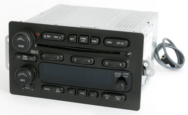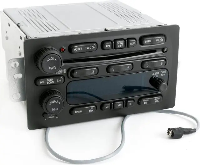 Option Code: UC6. This radio will need to be unlocked by a GM dealer and paired to your vehicle. See below for details. This is for a professionally remanufactured OEM factory 6 Disc CD truck and van radio that has been upgraded with a 3.5 mm aux input on a pigtail for use with any music device with a headphone jack. This includes iPod, iPhone, Android, satellite radio, mp3 players, portable game systems and more! Please confirm that this is the radio your vehicle requires as some of the vehicles used more than one style of radio. Please note that although this radio looks the same as the one used in cars, it is electronically different and will not work. The Auxiliary Input is a snap to operate... literally! Just plug in your 3.5 mm cable and it will play in full, crisp, clean quality. When you want to listen to the radio again, simply unplug the cable! The audio is full quality and takes advantage of all sound controls on the radio. This radio has been cleaned, upgraded, serviced as needed and thoroughly checked.