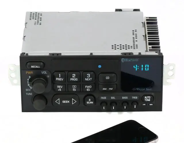 This listing is for a new '95-'02 (sometimes up to '05) Chevrolet car factory OEM AM FM Radio that has been professionally built with Bluetooth music capability! This radio was built using new and OEM GM parts and is interchangeable with many different part numbers. It has the option code UN0 and it will connect to a remote Cassette player sold separately. This radio has bolt-in mounts. It will fit a wide variety of cars. Part numbers vary widely and there are many completely interchangeable units. This unit is completely unlocked and cleared for Plug & Play use so you can skip the trip to the dealer! You will not lose any functionality due to the Bluetooth upgrade, and the radio will have all factory OEM features!