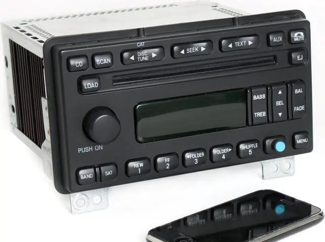 2003 - 2004 Lincoln Aviator Radio. AM FM 6 Disc CD Player OEM Radio Upgraded with Bluetooth Music Capability. Stream audio from a smartphone, tablet or Bluetooth capable music device! -- Bolt-In Style Mounts ---- Sound Mark Sound System --