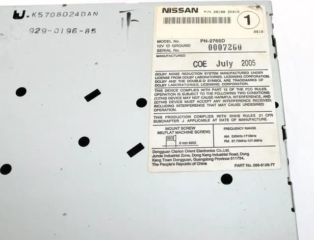 Model Number: PN-2765D. This listing is for a Nissan Maxima AM FM Radio Cassette 6 Disc CD Player. This radio has been professionally remanufactured, cleaned, and serviced as needed and thoroughly checked. The radio's appearance is decent, as pictured, and is in 100% working order. This radio is being sold as a REPLACEMENT ONLY! The part number is 28188ZK01A. If you do not have this exact part number currently in your vehicle, it will likely NOT WORK. If you are unsure of your part number, contact us with your VIN and we should be able to provide you with the correct part number. They may look the same and have the same plugs but data streams may be different, not allowing them to code. For example, external amps are used in some cars and will not allow interchange, etc.