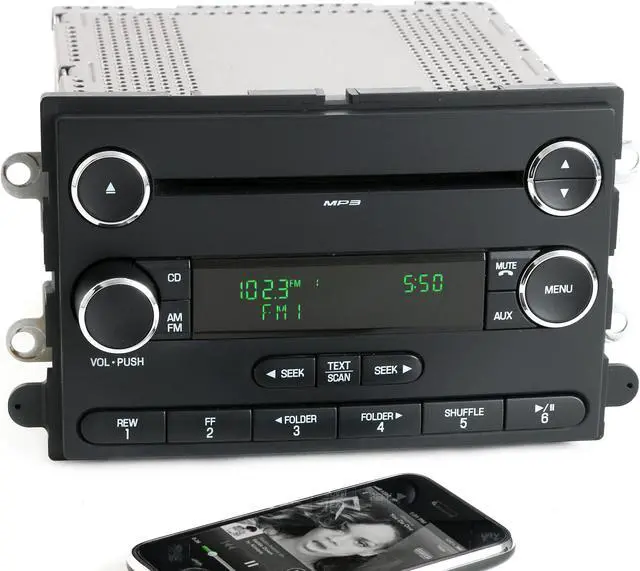 2008 - 2009 Ford Taurus & Mercury Sable AM FM mp3 CD Player Radio. OEM Radio Upgraded with Bluetooth Music Capability. Stream audio from a smart phone, tablet or Bluetooth capable music device! - Chrome Version -