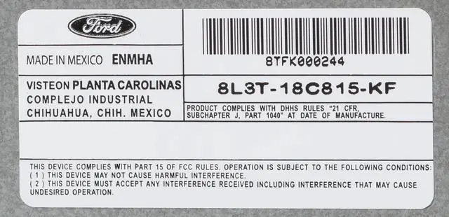 This unit is being sold as a REPLACEMENT ONLY! The part number is 8L3T-18C815-KF. If you do not have this exact part number, or compatible part number currently in your vehicle, it will likely NOT WORK. If you are unsure of your part number, contact us with your VIN and they should be able to provide you with the correct part number. They may look the same and have the same plugs but data streams may be different, not allowing them to code. For example, external amps are used in some cars and will not allow interchange, etc.
