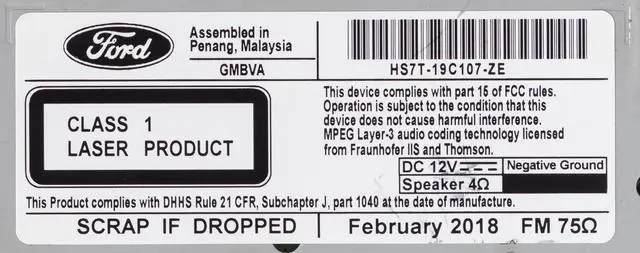 This unit is being sold as a REPLACEMENT ONLY! The part number is HS7T-19C107-ZE. If you do not have this exact part number, or compatible part number currently in your vehicle, it will likely NOT WORK. If you are unsure of your part number, contact us with your VIN and they should be able to provide you with the correct part number. They may look the same and have the same plugs but data streams may be different, not allowing them to code. For example, external amps are used in some cars and will not allow interchange, etc.