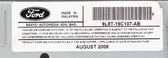 This radio is being sold as a REPLACEMENT ONLY! The part number for this radio is 9L8T-19C107-AB. If you do not have this exact part number currently in your vehicle, it will likely NOT WORK. If you are unsure of your part number, give a Ford dealer a call with your VIN and they should be able to provide you with the correct part number. They may look the same and have the same plugs but data streams may be different, not allowing them to code. For example, external amps are used in some cars and will not allow interchange, etc.