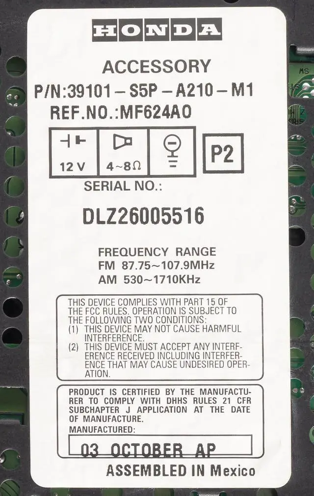 This unit is being sold as a REPLACEMENT ONLY! The part number is 39100-S5P-A210-M1. If you do not have this exact part number, or compatible part number currently in your vehicle, it will likely NOT WORK. If you are unsure of your part number, contact us with your VIN and they should be able to provide you with the correct part number. They may look the same and have the same plugs but data streams may be different, not allowing them to code. For example, external amps are used in some cars and will not allow interchange, etc.
