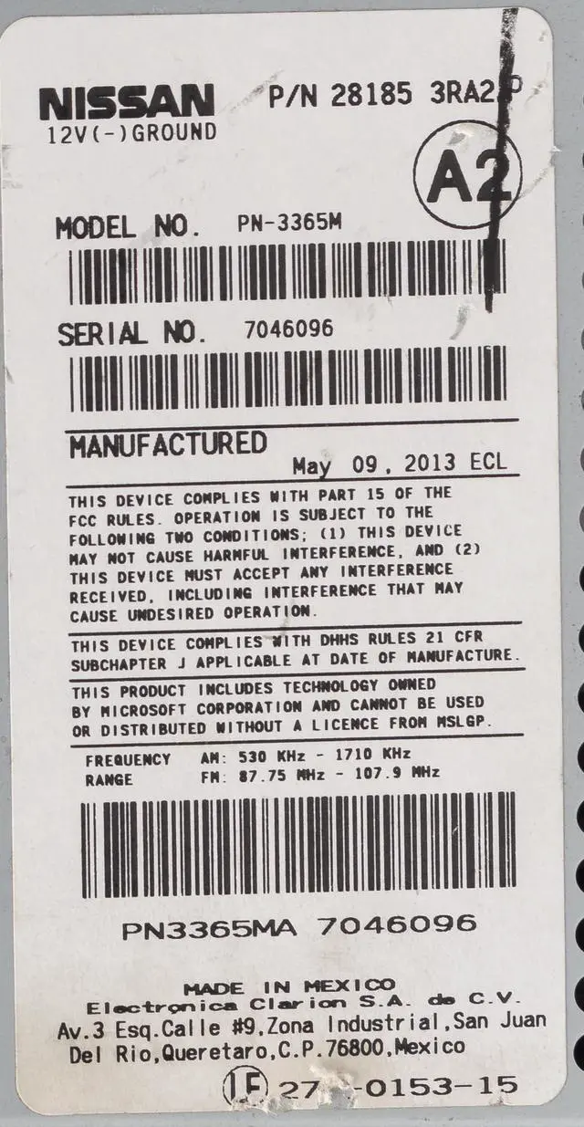 This unit is being sold as a REPLACEMENT ONLY! The part number is 281853RA2A. If you do not have this exact part number, or compatible part number currently in your vehicle, it will likely NOT WORK. If you are unsure of your part number, contact us with your VIN and they should be able to provide you with the correct part number. They may look the same and have the same plugs but data streams may be different, not allowing them to code. For example, external amps are used in some cars and will not allow interchange, etc.