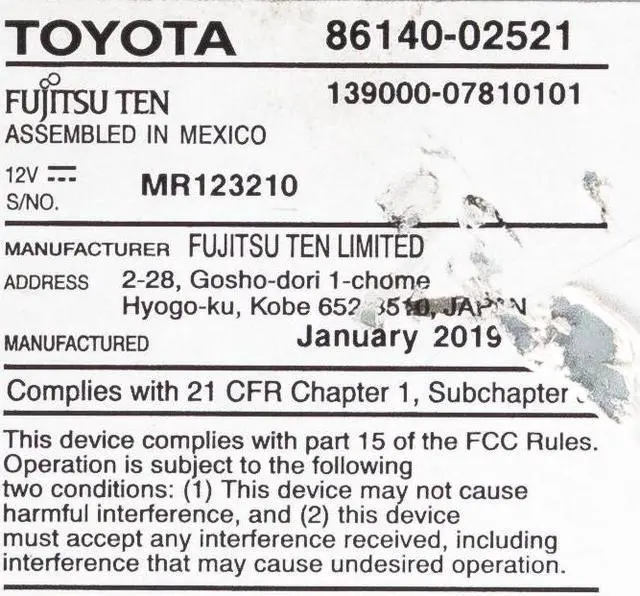 This unit is being sold as a REPLACEMENT ONLY! The part number is 86140-02521. If you do not have this exact part number, or compatible part number currently in your vehicle, it will likely NOT WORK. If you are unsure of your part number, contact us with your VIN and they should be able to provide you with the correct part number. They may look the same and have the same plugs but data streams may be different, not allowing them to code. For example, external amps are used in some cars and will not allow interchange, etc.