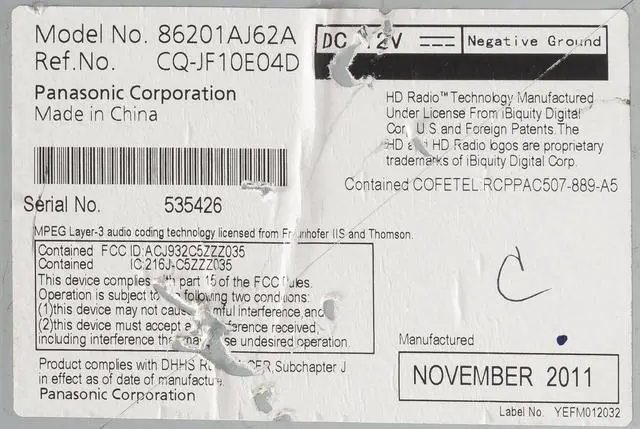 This unit is being sold as a REPLACEMENT ONLY! The part number is 86201AJ62A. If you do not have this exact part number, or compatible part number currently in your vehicle, it will likely NOT WORK. If you are unsure of your part number, contact us with your VIN and they should be able to provide you with the correct part number. They may look the same and have the same plugs but data streams may be different, not allowing them to code. For example, external amps are used in some cars and will not allow interchange, etc.