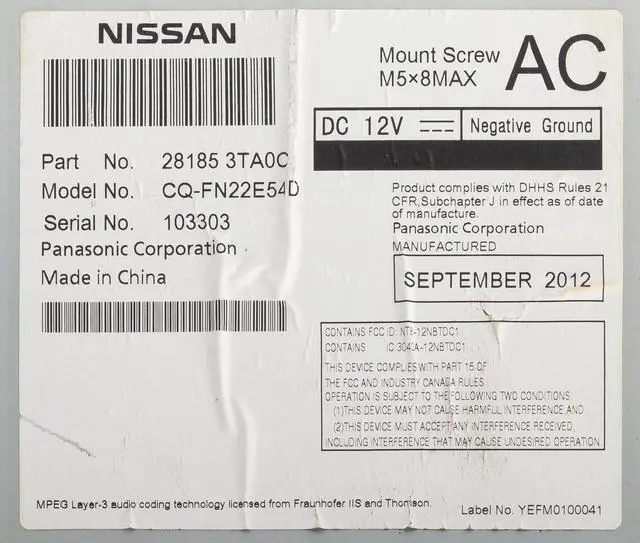 This unit is being sold as a REPLACEMENT ONLY! The part number is 281853TA0C. If you do not have this exact part number, or compatible part number currently in your vehicle, it will likely NOT WORK. If you are unsure of your part number, contact us with your VIN and they should be able to provide you with the correct part number. They may look the same and have the same plugs but data streams may be different, not allowing them to code. For example, external amps are used in some cars and will not allow interchange, etc.