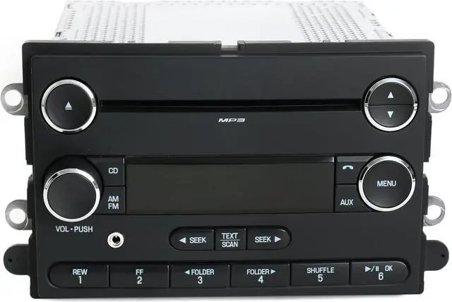 2008 - 2009 Ford Taurus X Radio AM FM mp3 CD Player Radio with Aux Input Upgraded with iPod Aux Input directly on the face! For use with iPod, iPad, iPhone, mp3 Player, Sirius XM Satellite, Android Phone & more! - Chrome Version -