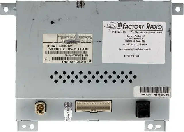 This unit is being sold as a REPLACEMENT ONLY! The part number is 05091143AE. If you do not have this exact part number, or compatible part number currently in your vehicle, it will likely NOT WORK. If you are unsure of your part number, contact us with your VIN and they should be able to provide you with the correct part number. They may look the same and have the same plugs but data streams may be different, not allowing them to code. For example, external amps are used in some cars and will not allow interchange, etc.