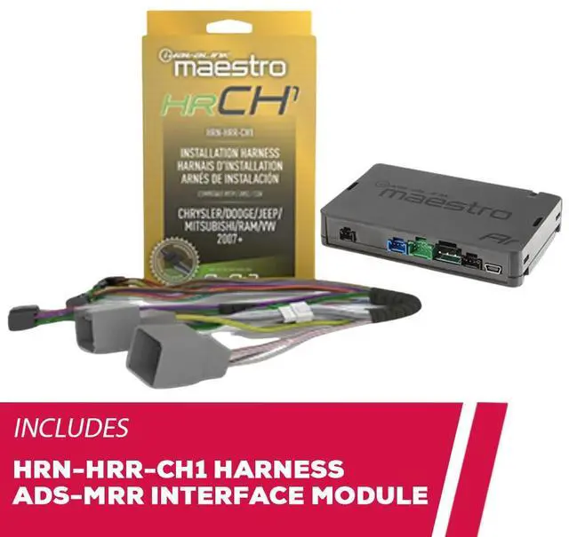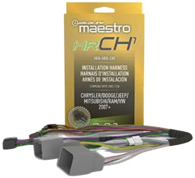 The iDatalink HRN-HRR-CH1 RR and RR2 radio replacement harness is specifically designed for select Chrysler, Dodge, and Jeep vehicles from 2007 and newer. This harness features a universal connector on the radio side, making installation quick and easy when paired with available Maestro head unit adapters. It also supports integration with your vehicle's existing backup camera and rear seat entertainment system when used with the optional AVCH1 accessory, providing a seamless upgrade experience.