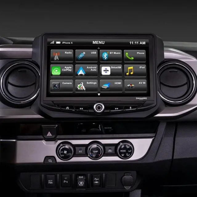 Integrated Tacoma Experience Featuring Your New HEIGH10® Radio. RadioPRO Tacoma kit for Stingers HEIGH10* infotainment system. The kit enables you to replace a Toyota Tacoma factory radio with a show-stopping HEIGH10 multimedia display while retaining most factory features and adding even more upgraded features, including Apple CarPlay, Android Auto, and more to your truck's stereo system!