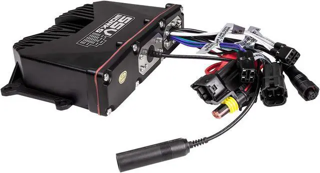 The controller features a large adjustable hyper-white LED backlit display designed to be visible in all conditions while controlling volume, track, and play/pause functions with glove friendly, backlit rubber-coated buttons.