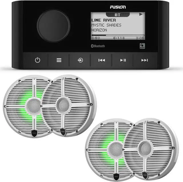 Fusion MS-RA60 Marine Stereo With 2 Pair of Wet Sounds RECON6-XWW-RGB 6.5" White Grill Marine Speakers with RGB Lighting - This bundle includes a Fusion MS-RA60 Marine Stereo With Wireless Connectivity, 2 Wet Sounds RECON 6 XW-W RGB LED Recon Series 6.5" 60-Watt RMS Coaxial Speakers With White XW Grilles (Pair), a pry kit, and a Creative Audio coozy.