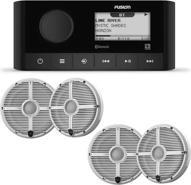 Fusion MS-RA60 Marine Stereo With 2 Pair of Wet Sounds RECON6-XWW 6.5" White Grill Marine Speakers - This bundle includes a Fusion MS-RA60 Marine Stereo With Wireless Connectivity, 2 Wet Sounds RECON 6 XW-W Recon Series 6.5" 60-Watt RMS Coaxial Speakers With White XW Grilles (Pair), a pry kit, and a Creative Audio coozy.