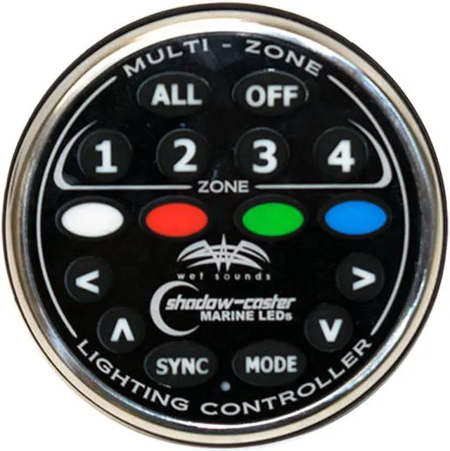 Wet Sounds/Shadow Caster Multi-Zone Black Box RGB lighting distribution case.