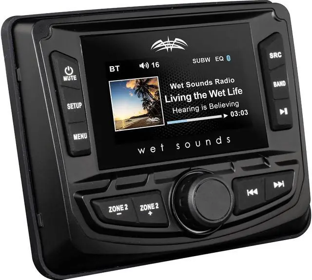 Wet Sounds WS-MC-2: 3-Inch Gauge Style Marine Media System with 2.7-Inch Full-Color LCD Display, Bluetooth
