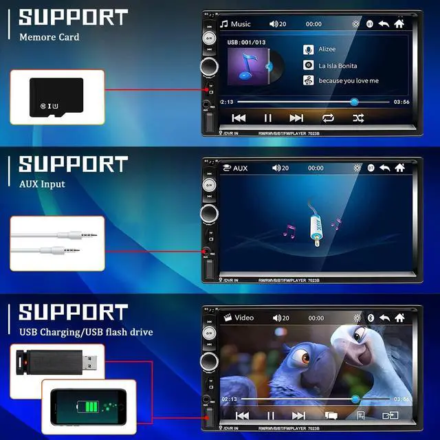 CAMECHO 7" Double Din Car Stereo Audio Bluetooth MP5 Player