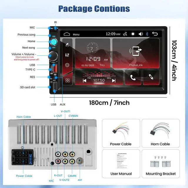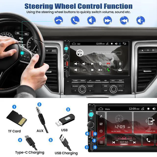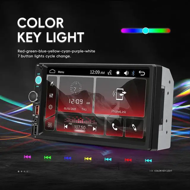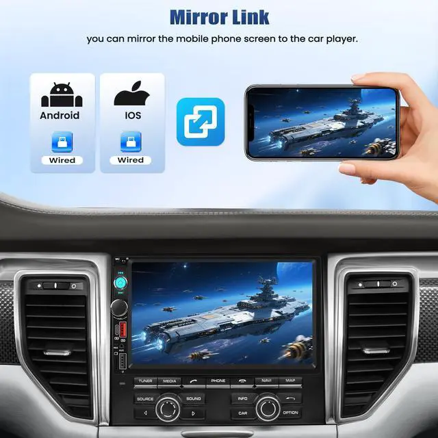 The 7 inch double din car stereo supports mirror link, Bluetooth hands-free, FM, SWC, Color Backlight , USB/Type-C/AUX/SD input playback, suitable for various brand of cars with double din opening