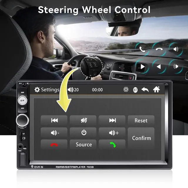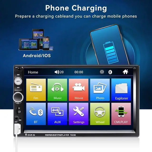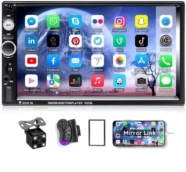 CAMECHO 7" Double Din Car Stereo Audio Bluetooth MP5 Player