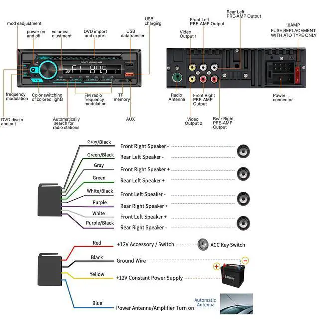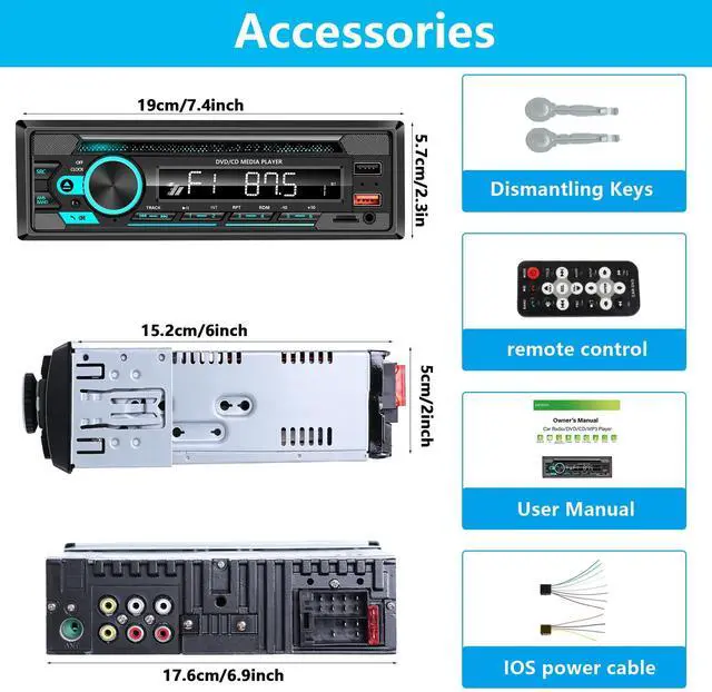 Single DIN Car Stereo CD/DVD Player with Bluetooth