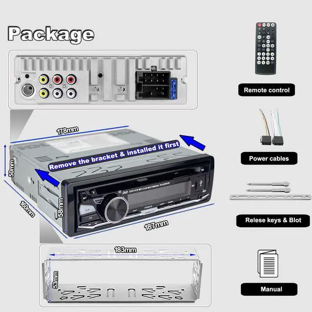 2. Install size: 7"x 2" (Single Din)
