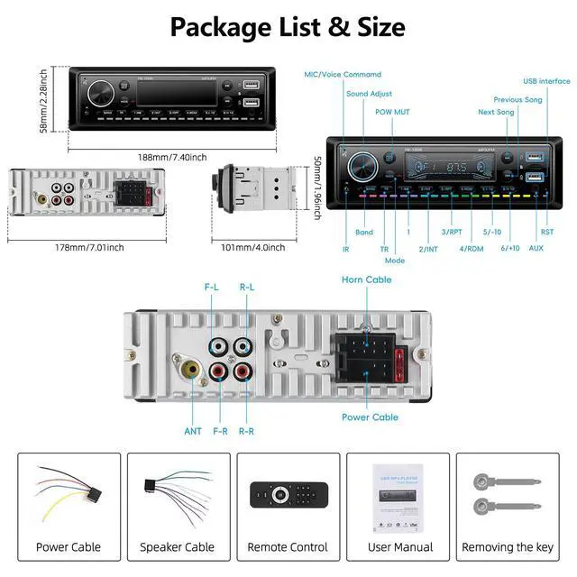 Single Din Car Stereo Radio Bluetooth