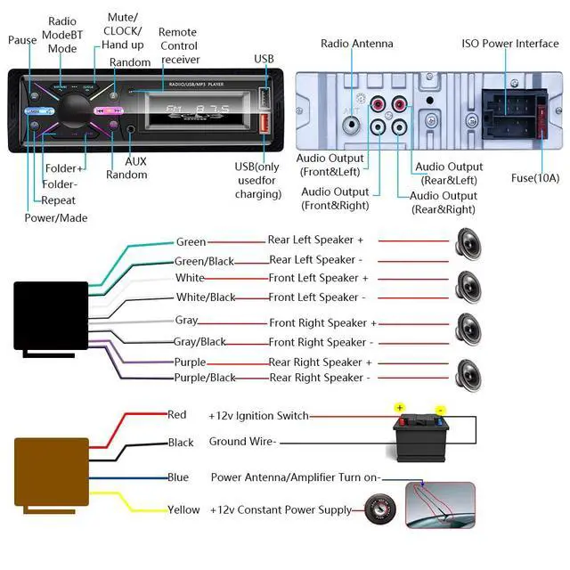3. Dual USB ports, one to insert a USB flash drive to play stored music and the other to quickly charge your phone, so you don't have to worry about your phone battery during long trips.