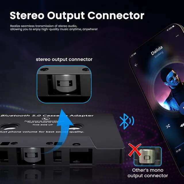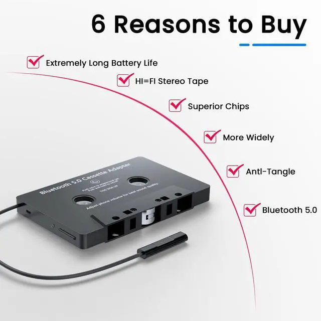 Equipped with the latest Bluetooth 5.0 technology, our car Bluetooth cassette adapter can seamlessly connect your multiple devices, whether it is a smartphone or a tablet, it can be easily paired. Enjoy a stable and efficient wireless music playback and call experience, making your driving journey more enjoyable.