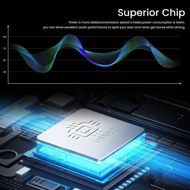Bluetooth 5.0 technology ensures long battery life, allowing you to continue to enjoy music and calls during long drives without worrying about power issues.