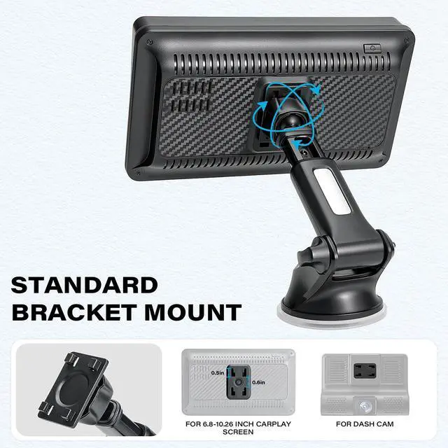 It works with 99% of CarPlay screens equipped with either a 4-hole bracket or a 17mm ball mount socket—plug and play!