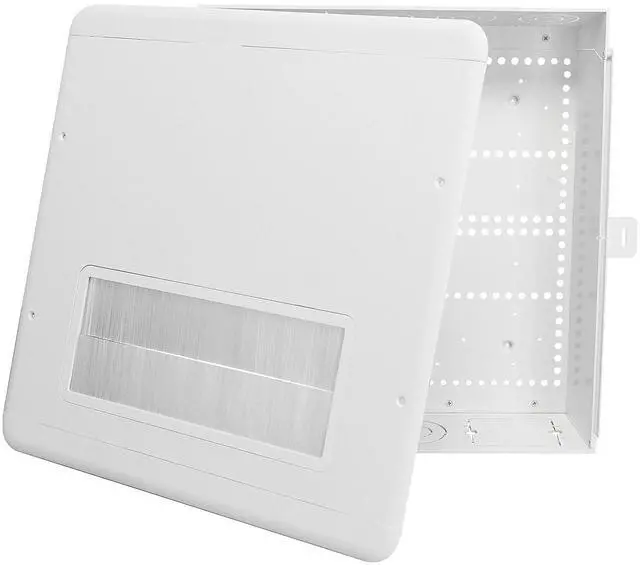 DataComm Electronics 80-1500-BR 15-Inch Plastic Enclosure Box with Brush Cover&bull15 in. enclosure&bullMade of ABS plastic&bullABS construction reduces interference with Wi-Fi (R) signals&bullProtects cables from punctures&bullService loops and call backs become more manageable&bullUniversal hole pattern allows for most standard modules to be installed&bullSurface or flush mountable (additional parts required for surface mounting, sold separately)&bull2 knockouts for single gang J-Box power module (80-0050 sold separately)&bullEnclosure conforms to UL (R) Standard 2416, CAN/CSA STD C 22.2 No. 60950-7-07, and are ETL (R) listed&bullIncludes screws and open end cap15-Inch Plastic Enclosure Box with Brush Cover